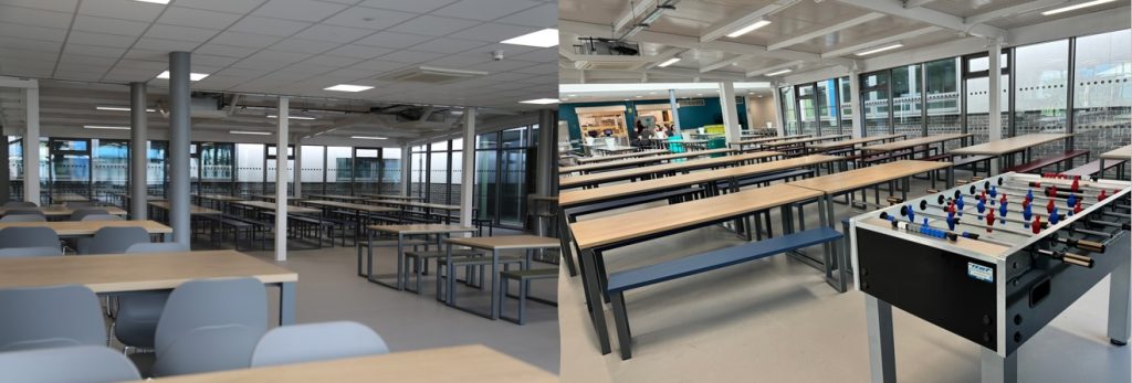 We have recently upgraded our dining hall, adding 150 new seats and enhancing the space with modern facilities to create a brighter, more enjoyable environment for students and staff alike.