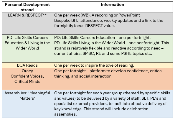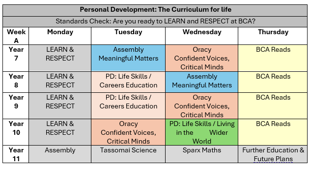 Personal Development is delivered through; PSHE education, Relationships, Sex and Health Education (RSHE), assemblies, tutor time, enrichment activities and the wider life of the school.